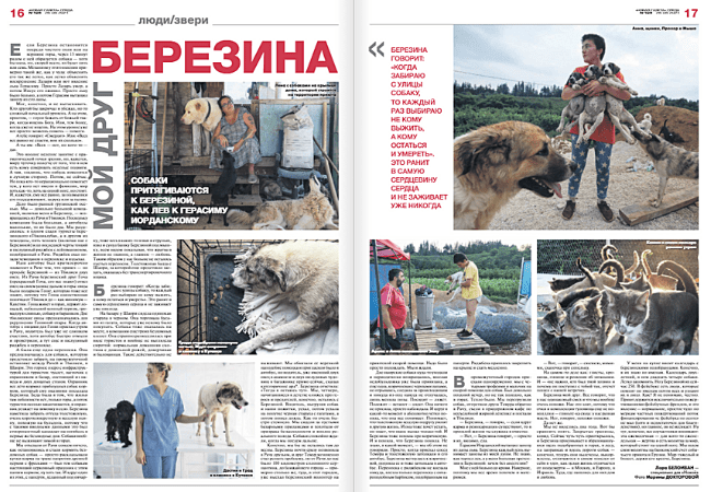 ბერეზინა ამბობს: “ყოველჯერ, როცა ძაღლი ქუჩიდან ამყავს, მე ვირჩევ არა იმ ძაღლს, რომელიც გადარჩება, არამედ იმას, ვინც დარჩება და მოკვდება”. ეს განცდა გულზე მოუშუშებულ იარას ტოვებს.