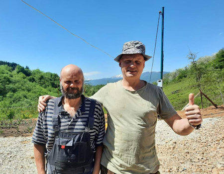 Сергей приезжает к нам на помощь уже во второй раз (в первый свой визит в Грузию он помогал отстраивать Земо-Цклулети и забрал с собой одну из наших собак, с которой не смог расстаться — Нонну из семейства Чемишвили). Александр — его двоюродный брат. Оба они живут в разных странах, но смогли встретиться и вместе работать над нашим проектом.