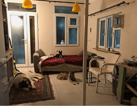 Напомним, что вся внутренняя отделка дома выполнялась практически с нуля — на голом пустом каркасе из досок. Теперь дом пригоден для жизни! Обеспечен электричеством. Отделаны и утеплены жилые и хозяйственные помещения, ванная комната (она же, по совместительству, карантин для собак), кухня и веранда (которая из-за острой нехватки места также заселена животными).