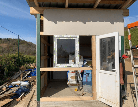 Больше года наш сторож Рамази каждую ночь дежурил в машине, но скоро он сможет работать в полном комфорте. На фотографиях состояние дел на 9 ноября, работа продолжается.